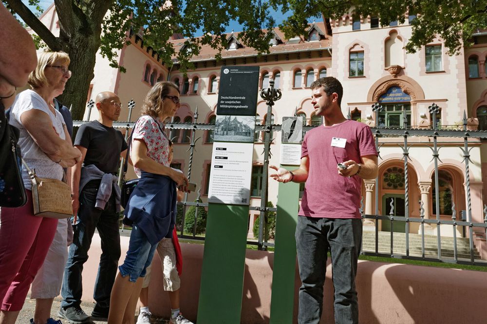 Bei einem 60-minütigen Rundgang durch das historische Areal der Geheimdienststadt zeigen wir erhaltene Spuren, bauliche Relikte und Gebäude, wie den ehemaligen Deutschlandsitz der sowjetischen Militärspionageabwehr und das Wohnhaus der Geheimdienstchefs. Ebenso sind die Reste einer großen Denkmalanlage zu entdecken.